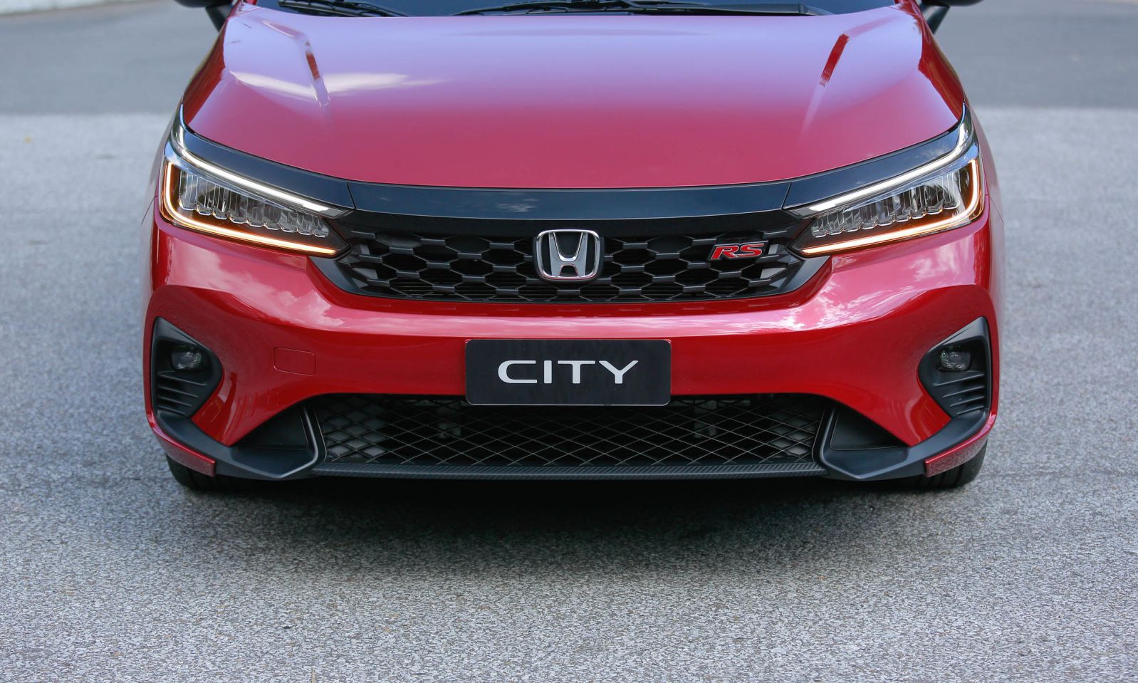 Lưới gió bên dưới của Honda City theo kiểu hình thang, cản trước dạng dẹp đậm chất thể thao giống Honda Civic. Ở phiên bản RS, lưới gió sử dụng hoạ tiết tổ ong tương tự lưới tản nhiệt bên trên, cản trước thêm vân giả carbon khá đẹp mắt. Trên phiên bản G và L, phần này thiết kế đơn giản hơn chỉ gồm các thanh nan chạy ngang.