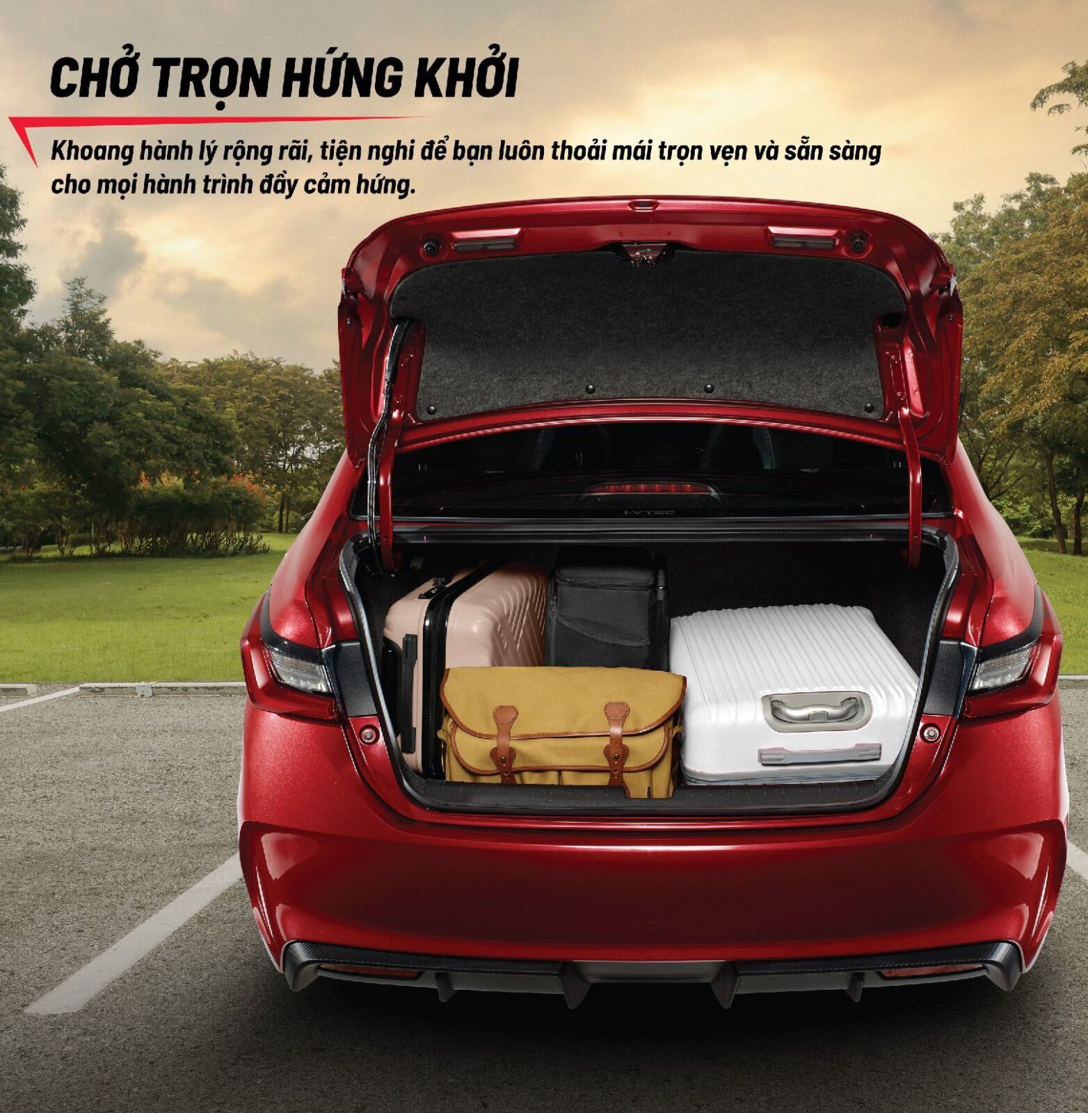 Khoang hành lý Honda City rất rộng, dung tích đến 536 lít. Tuy nhiên hơi tiếc khi người dùng không thể mở rộng không gian cốp sau bởi lưng hàng ghế thứ hai thiết kế cố định.