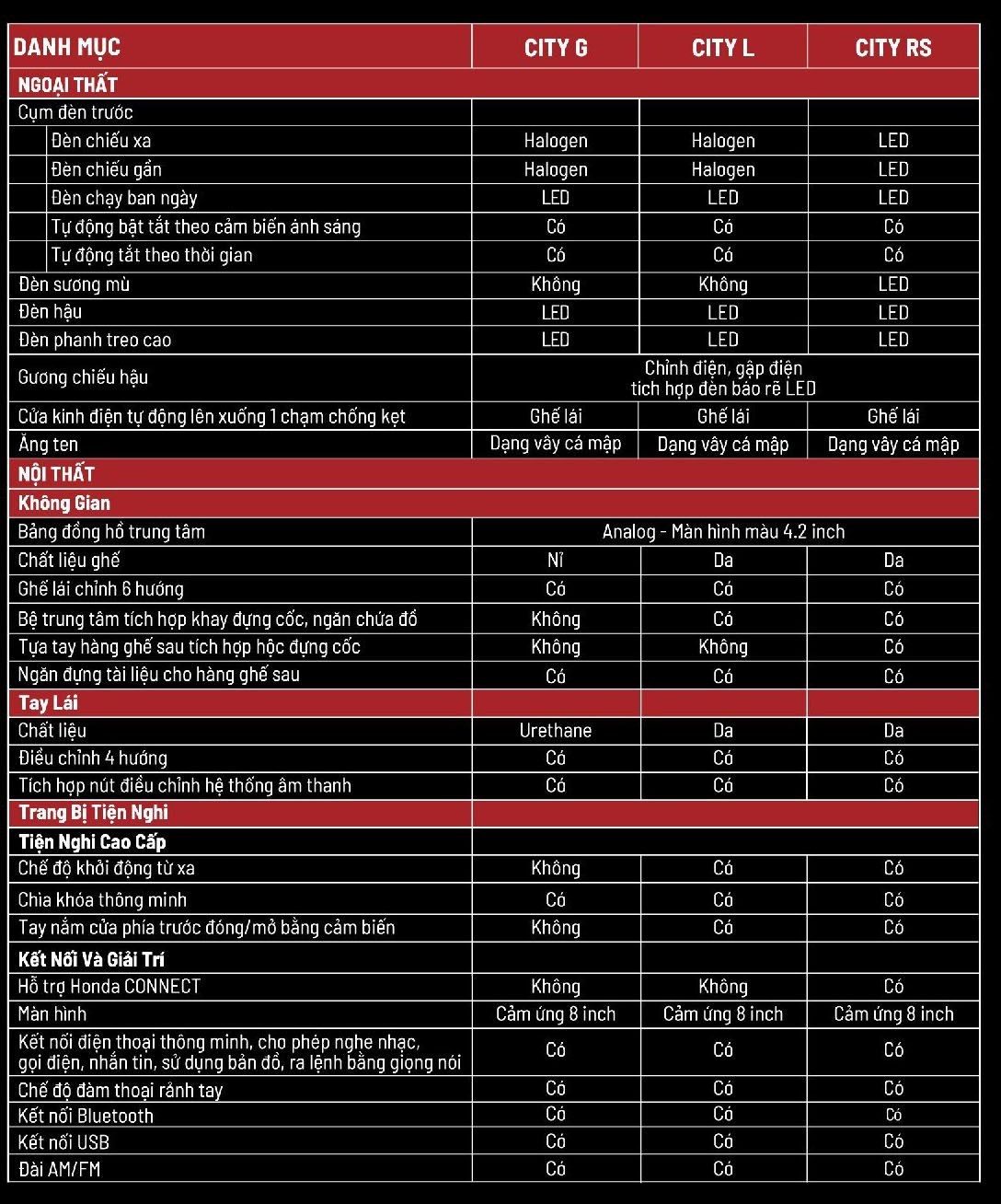 Ở các phiên bản City G và L, tuy vẫn chỉ dùng đèn Halogen nhưng có thêm Projector với giao diện tách 3 khoang và có cả mí LED tương tự RS.